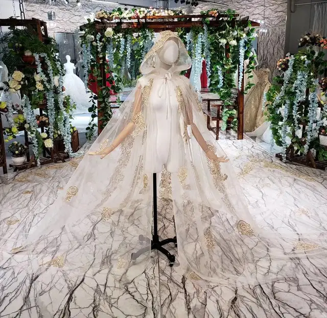 Luxuriose Gold Hochzeit Kleid Weg Von Der Schulter Mit Cape Hut Hoodie Schleier Lange Braut Ballkleider Prinzessin Kleid Vestido De Noiva Wedding Dresses Aliexpress